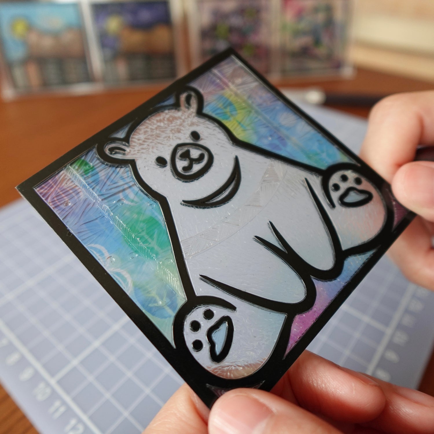 在預先印有圖案既PVC矽膠片上